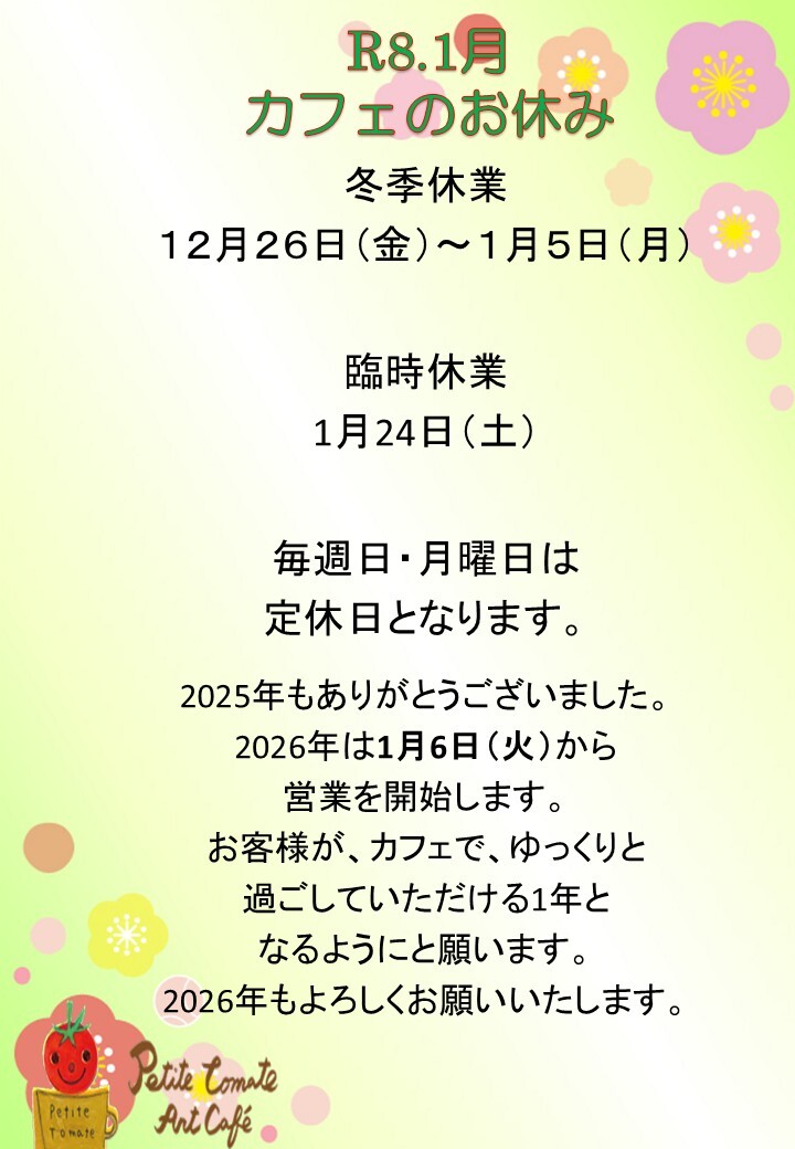2024.5.1 ぷちとまとアートカフェのメニューをアップしました。こちらをクリック